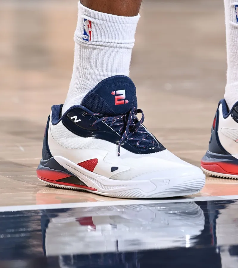 比赛中,伦纳德上脚New Balance Kawhi4 PE。
